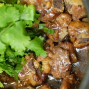 排骨、豆豉、葱、香菜、蒜、姜、盐、鸡粉、生抽、生粉、蚝油、香麻油、白糖、老抽。