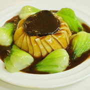 杏鲍菇、水发冬菇、上海青、姜、葱、鸡油、盐、糖、鸡粉、鲍汁、生粉、蚝油、老抽。