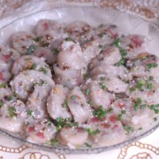 猪大肠、糯米、香菇、五花肉、腊肠、干虾米、姜、香菜、葱、盐、胡椒粉、鸡粉、糖、香麻油。