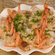 虾、泡发粉丝、蒜蓉、姜、葱、盐、料酒、鸡粉、胡椒粉、生抽、老抽、油。