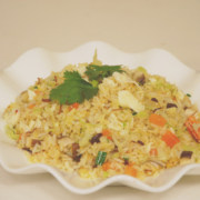 米饭、鸡蛋、胡萝卜粒、生菜丝、冬菇粒、葱花、盐、鸡粉、海鲜酱。