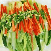 芹菜、黄瓜、红椒、葱花、鸡粉、盐、芝麻香油、醋、花椒油。