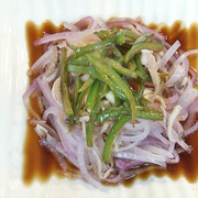 鱿鱼、洋葱、辣椒、鸡粉、盐、辣椒油、醋、生抽、料酒。