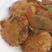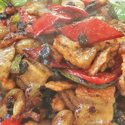香菇、青椒、红椒、葱、姜、蒜、盐、鸡精、生抽、老抽、蚝油、料酒、生粉。