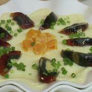 鸡蛋、咸蛋、皮蛋、葱、盐、鸡粉、胡椒粉、清水。