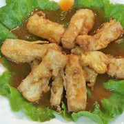 豆腐、生菜、番茄汁、水淀粉、醋、白糖、干淀粉。