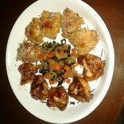 鸡腿、红薯淀粉、面粉、韩国辣椒酱、洋葱、蒜、姜、盐、糖、肉桂粉、鸡蛋、酒。