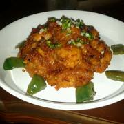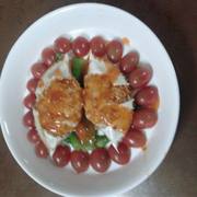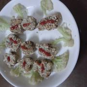 梭子蝥、肉末、青菜、花雕酒、胡椒粉、姜、盐、泰式甜辣酱、生粉、圣女果。