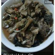 二黄鸡、黑木耳、油、盐、生粉、蚝油、白酒、姜丝、生抽。
