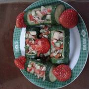 鸡腿、黄瓜、红甜彩椒、苹果醋、盐、肉桂粉、草莓。