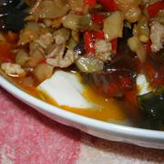 内酯豆腐、皮蛋、榨菜、肉末、剁椒。