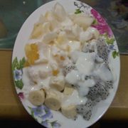苹果、橙子、火龙果、香蕉、荸荠、梨、酸奶。