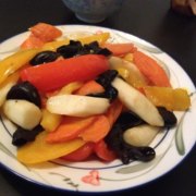 黑木耳、山药、红萝卜、彩椒、白醋。