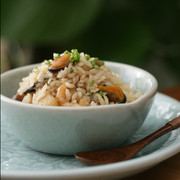 大米、白萝卜、五花肉、海蛎子干、海虹干、干贝、虾干、珍珠香菇、红葱头、姜片、香葱、盐、生抽、老抽、鲍汁、黄酒、水。