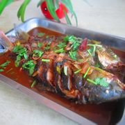鲤鱼、葱、姜、蒜、青辣椒、干辣椒、香菜、盐、味精、东北大酱、东北辣椒酱、酱油、醋。