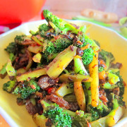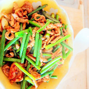 猪精肉、蒜薹、葱、姜、蒜、麻椒、生抽、糖、红油、盐、鸡精。