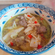 牛肚、酸浆辣子、蒜、葱、姜、干辣椒、生抽、麻椒、豆瓣酱、糖、鸡精。