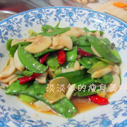 杏鲍菇、荷兰豆、葱、姜、蒜、红辣椒。