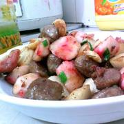 鲜鱿鱼、鲜虾、胡萝卜、土豆、口菇、青椒、咖喱粉、盐、生粉。