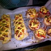 法包、彩椒、芝士、香肠、鸡蛋、椒盐、番茄酱。