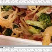 意面、培根、西兰花、黄油、马苏芝士、油咖喱、盐、黑胡椒碎。