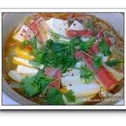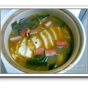 辣白菜、五花肉、老豆腐、海带结、蟹肉棒、蒜末、姜片。