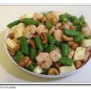 甜豆、蛋白、虾仁、腰果、料酒、白胡椒粉、盐、味精、淀粉。