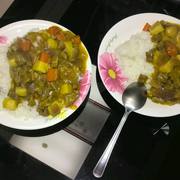 牛肉、胡萝卜、土豆、紫色洋葱、咖喱块、色拉油。