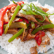 烧鸭子、青椒、红椒、洋葱、西芹、蒜、葱。