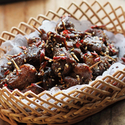 羊肉、干辣椒、孜然粉、孜然粒、白芝麻、料酒、酱油、盐、糖、淀粉。
