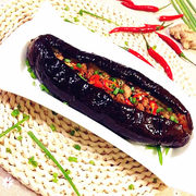 长茄子、肉糜、香辣酱、白糖、橄榄油、黑胡椒、辣椒油、大蒜、生抽、五香粉。