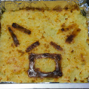 白芸豆、香菇、牛肉丝、土豆、洋葱、黑胡椒、百里香、迷迭香、芫荽、白兰地、卡夫巴马奶酪粉、牛奶、马苏里拉奶酪、黄油、黑胡椒。