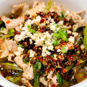 猪里脊、油麦菜、蒜、葱、花椒、干红辣椒、白胡椒、淀粉、盐、辣椒酱料、食用油。