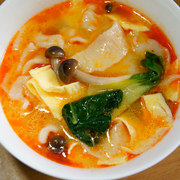 海虾、草菇、柠檬叶、朝天椒、柠檬片、鱼露、植物油、盐、椰浆、冬阴功酱。