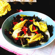 娃娃菜、黑木耳、油、盐、红辣椒、大蒜。