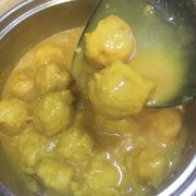 墨鱼丸、咖喱块、椰浆、洋葱。
