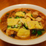 猪肉末、甜面酱、榨菜、洋葱、葱、姜、蒜、生抽、绍兴酒、豆瓣酱、清汤、麻油、胡椒粉。
