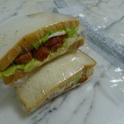 面包片、肠仔、鸡蛋、番茄、生菜、芝士片。