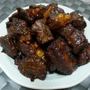 肋排、葱、姜、八角料、桂皮、油、老抽、生抽、料酒、鸡粉、糖。