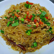 干粉丝、肉末、豆瓣酱、姜片、蒜末、葱花、干辣椒、老抽、猪骨汤、红辣椒碎、青蒜碎。