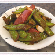 扁豆、番茄、蒜、老抽、生抽、糖、鸡粉。
