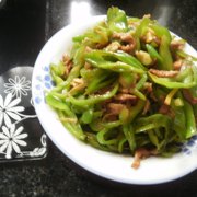 背脊肉、青椒、生姜、香葱、油、盐、味精、生抽、淀粉、豆瓣。