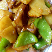 茄子、土豆、青椒、六月香豆瓣酱、生抽、糖、蒜头、油、盐。
