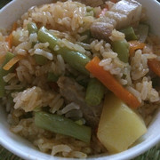 豆角、胡萝卜、土豆、米、沙茶辣、盐、蒜头。