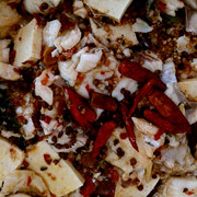 草鱼、花菜、土豆、百叶豆腐、海带、鸡蛋清、淀粉、盐、料酒、郫县豆瓣酱、花椒、辣椒、油、姜。
