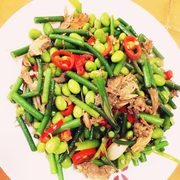 毛豆、蒜苗、手撕肉、小青椒、xiaohongjiao、蒸鱼油、酱青、洋葱、大葱、大蒜。