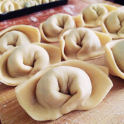 普通面粉、鸡蛋A、水、韭菜、鸡蛋B、豆腐干、肉、盐、酱青、麻油。