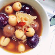 银耳、百合、白莲、枸杞、红枣、干桂圆、冰糖、红糖、清水。