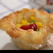 印度煎饼皮、玉米粒、豌豆粒、奶酪片。