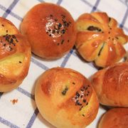 高粉、鸡蛋、酵母、水、黄油、白糖、奶粉、红豆沙、蛋液、黑芝麻。